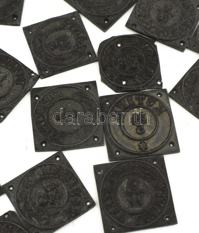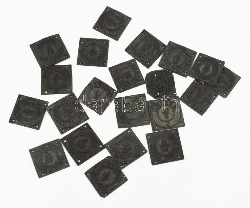 19. századi postai bélyegzések lenyomatai fémlapokon, 21 darab, cca 25...