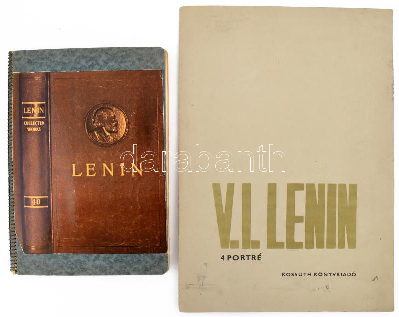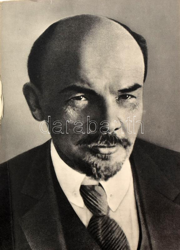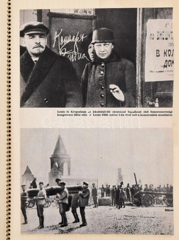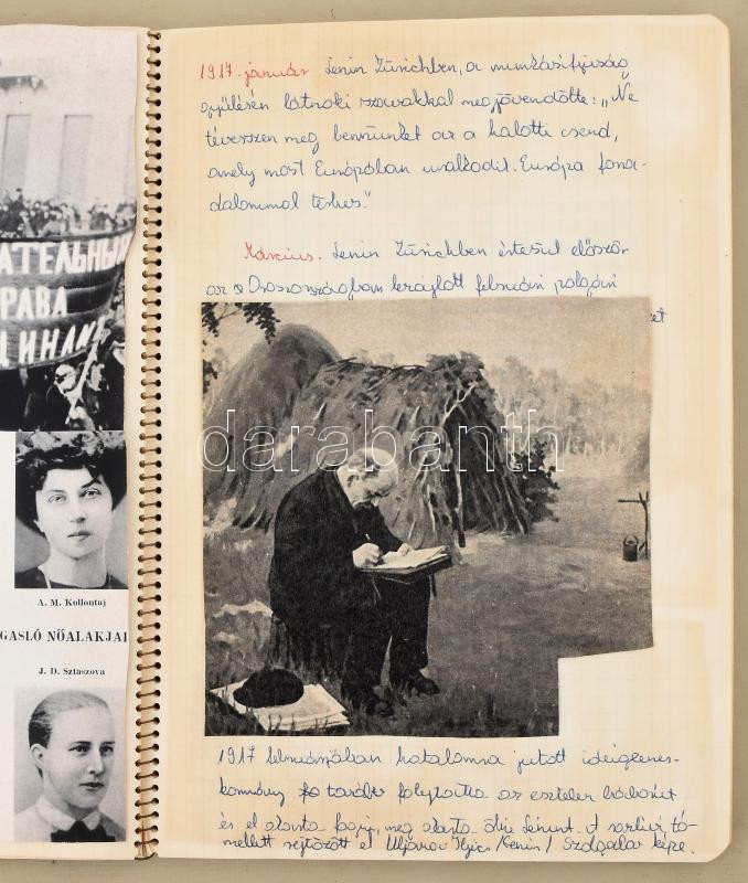 1970 V. I. Lenin - 4 portré, mappa 3 db képpel (egy hiányzik), kissé sérült, 33,5x23,5 cm + Lenin életéről készített összeállítás, kézzel írt bejegyzésekkel és beragasztott kivágásokkal, füzetben