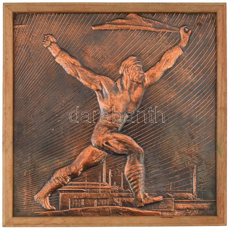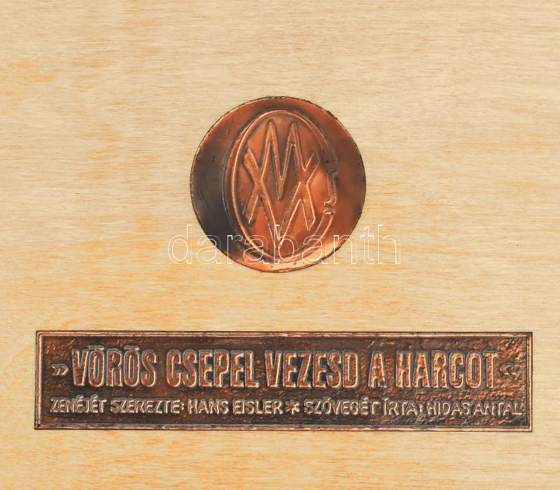 1971 "Vörös Csepel vezesd a harcot" bakelitlemez, rézrátétes fa dobozban.