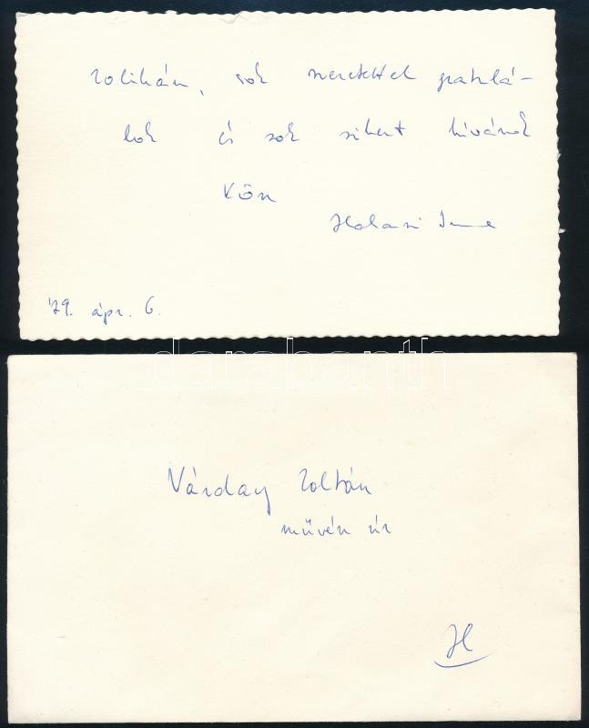 1979 Halasi Imre (1951- ) Jászai Mari-díjas rendező, színházigazgató autográf aláírása és gratuláló sorai Várday Zoltán (1947-2023) színész részére, borítékkal