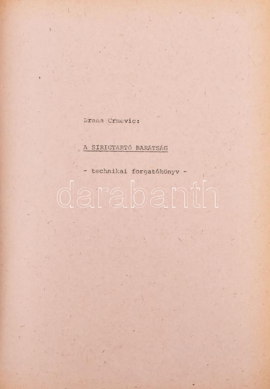 cca 1970 Brana Crnevic: A sirigtartó barátság. Technikai forgatókönyv. MAFILM. A borítón: Steiner László. Modern nyl-kötés, 73 p.