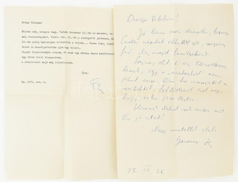 cca 1975 Baranyi Ferenc (1937-) író, költő, műfordító autográf levele, és gépelt levele, aláírásával Lázár Tibor (1933-?) költő részére