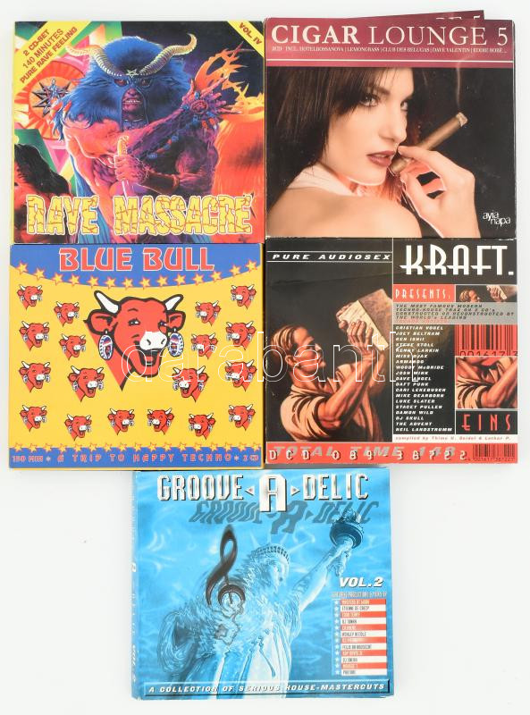 Vegyes 5 darabos CD tétel: Groove-a-delic. + Kraft: Eins. + Blue Bull + Cigar Lounge 5 + Rave Massacre vol. IV