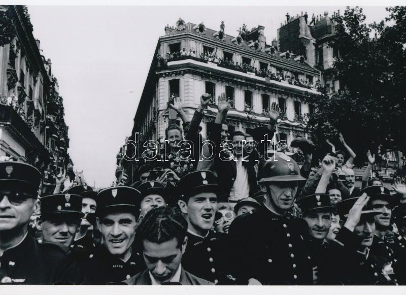 Description: 1944 Robert Capa (1913-1954) (eredeti neve Friedmann Endre) magyar - francia fotóriporter felvétele (Párizs felszabadult), a néhai FOTÓ újság (1954-1989) archívumából 1 db modern nagyítás, jelzés nélkül, 15x21 cm