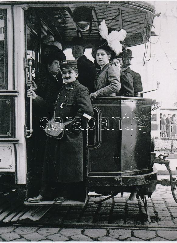 cca 1912 Bécsi villamos kalauzzal, 1 db modern nagyítás Fekete György ...