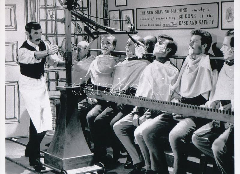 cca 1929 ,,Borbélymester és a gépesÃtett borotváló segédje", 1 db modern nagyÃtás, jelzés nélkül, a ,,Kankovszky's Hungarian Presse Photographic Exchange" sajtófotó ügynökség hagyatékából, (vélhetÅ‘en nem Kankovszky felvétele!), 15x21 cm