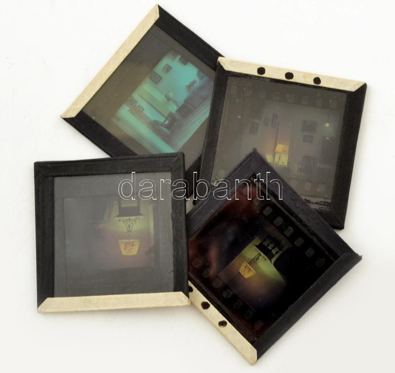 cca 1940 Lakásbelsők és bútorok, 4 db keretezett diapozitív, 3,5×2,5 c...
