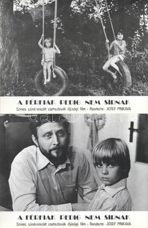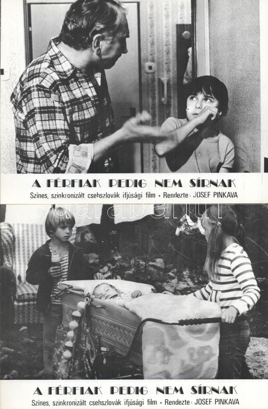 Description: cca 1989 előtti ,,A férfiak pedig nem sírnak" című szovjet film jelenetei és szereplői, 5 db produkciós filmfotó (vitrinfotó, lobbyfotó) nyomdatechnikával sokszorosítva kartonpapírra, egyoldalas nyomással, a használatból eredő (esetleges) kisebb hibákkal, 18x24 cm