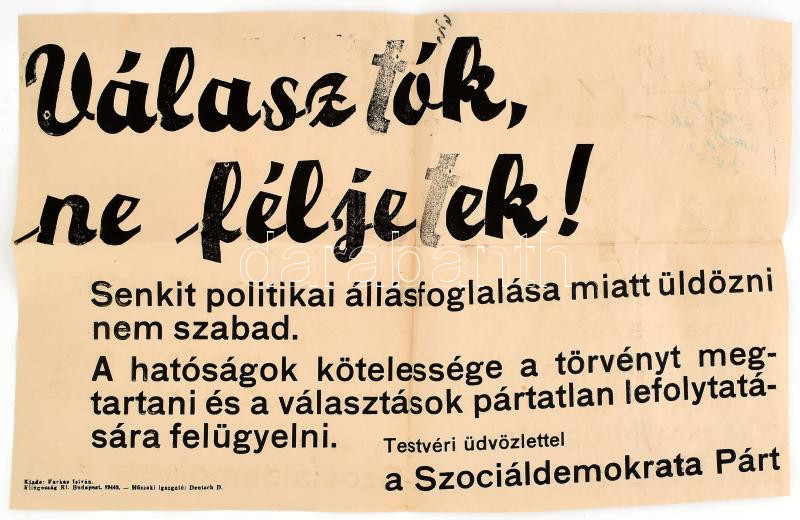 https://www.darabanth.com/en/466-Online-auction/466.0/Art-and-other-collectibles/Posters~500014/cca-1935-Valasztok-ne-feljetek-A-Szocialdemokrata-Part-plakatja-42x27-cm-Hajtva~II3142526