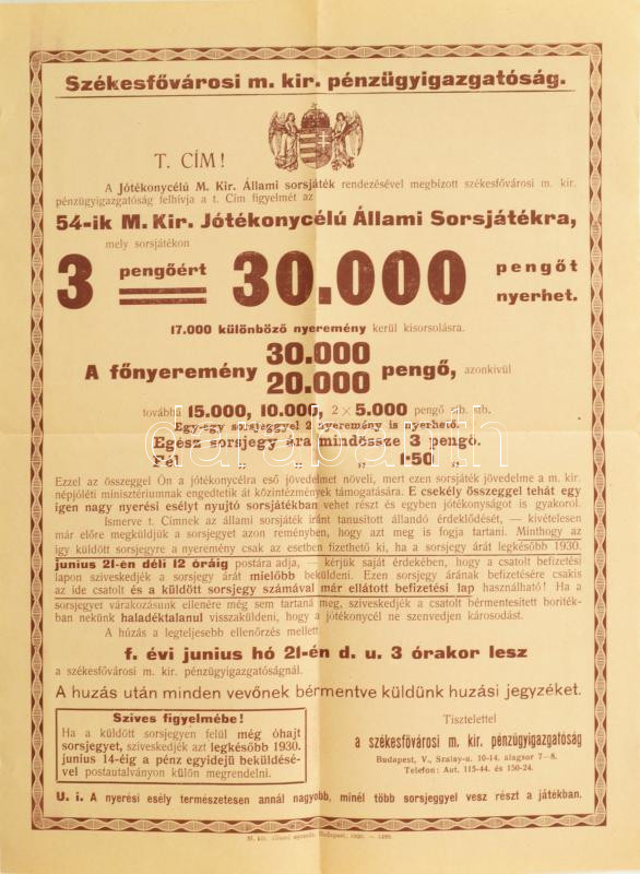 https://www.darabanth.com/en/466-Online-auction/466.0/Art-and-other-collectibles/Printed-Materials~500013/1930-Az-54-M-kir-Jotekonycelu-Allami-Sorsjatek-ismerteto-plakatja-hajtott-jo-allapot~II3149384