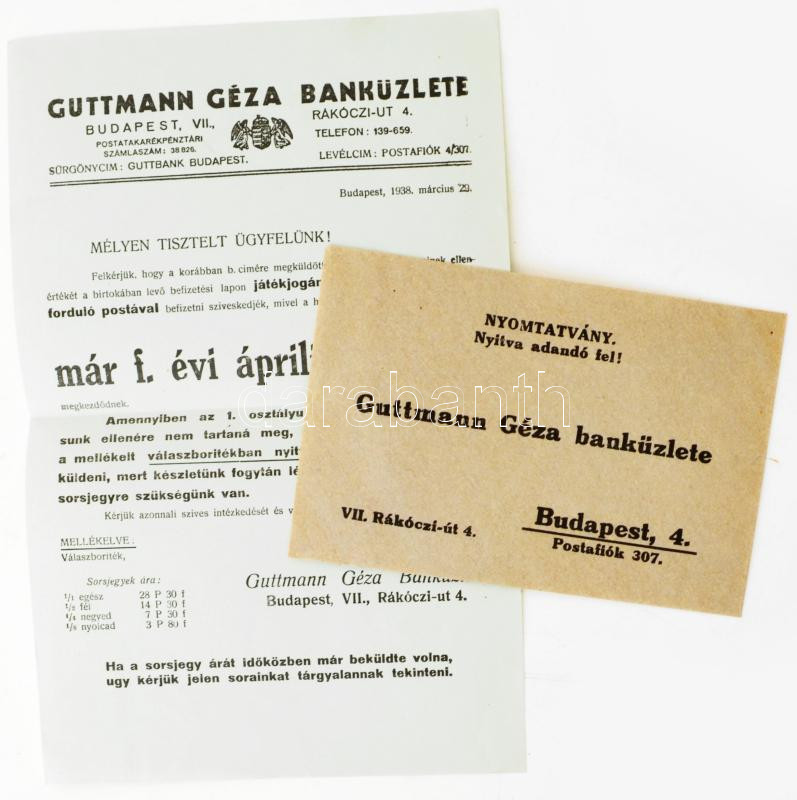 1938 Guttmann Géza bankja által levélben szétküldött sorsjegyek játékj... https://www.darabanth.com/en/466-Online-auction/466.0/Art-and-other-collectibles/Printed-Materials~500013/1938-Guttmann-Geza-bankja-altal-levelben-szetkuldott-sorsjegyek-jatekjoga-erdekeben-befize~II3149406