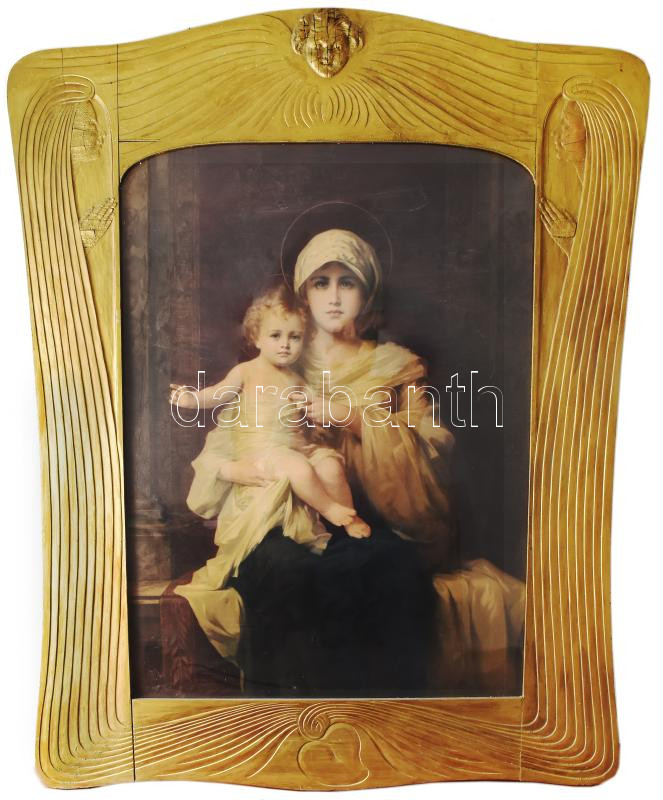 Nyomat. Madonna gyermekkel. papír, nyomat, 97x70 cm, díszes, szecesszi... https://www.darabanth.com/en/466-Online-auction/466.0/Art-and-other-collectibles/Printed-Materials~500013/Nyomat-Madonna-gyermekkel-papir-nyomat-97x70-cm-diszes-szecesszios-kezzel-faragott-kepke~II3136559