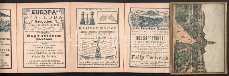 cca 1880 Szeged képes leporelló 14 db képpel, hátoldalán reklámmal, hátsó borítóval, első borító nélkül.