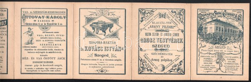 cca 1880 Szeged képes leporelló 14 db képpel, hátoldalán reklámmal, há...