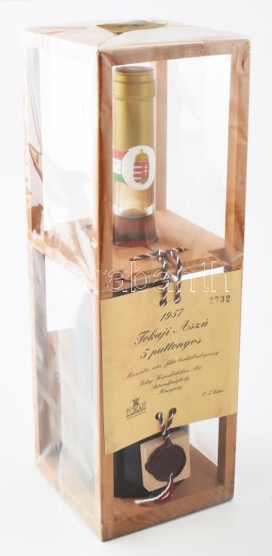 1957 5 puttonyos tokaji aszú bontatlan palack muzeális bor díszcsomago...