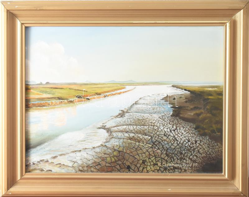 H. Czékmány Ilona: Aszály. Olaj, farost, jjl.: H. Czékmány Ilona 99. 36x53 cm, keretezett, jó állapotú.