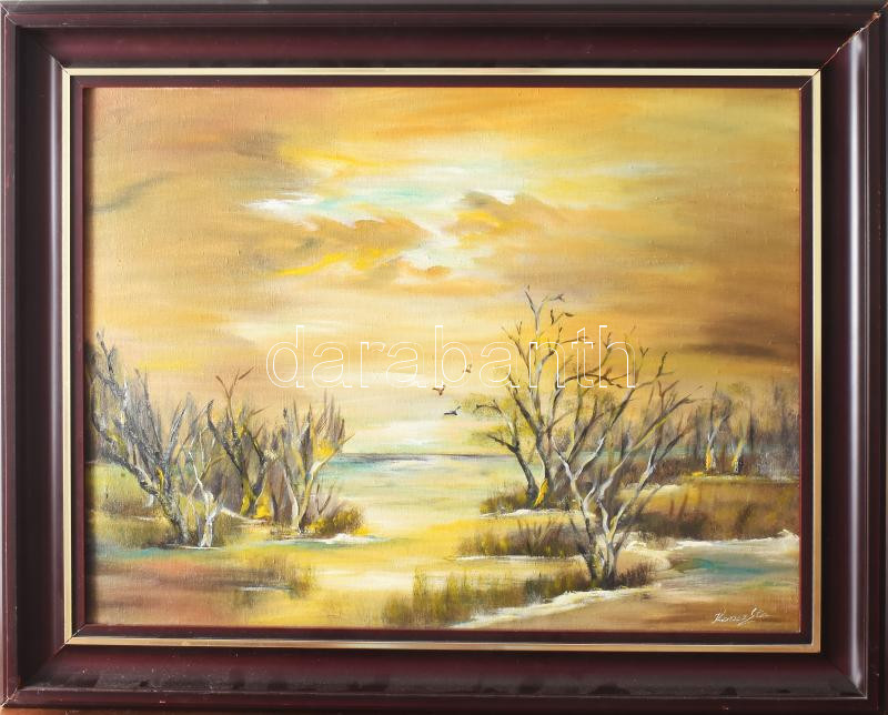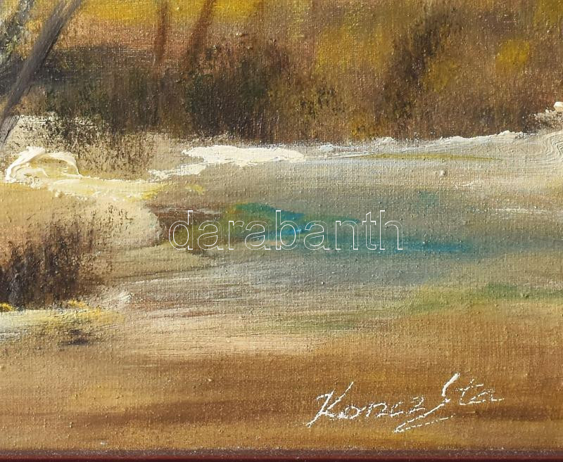 Koncz Eta (?-2016): Vihar előtti csend. Olaj, farostra kasírozott vászon. JJl.: Koncz Eta. 50x60 cm, keretben, jó állapotú.