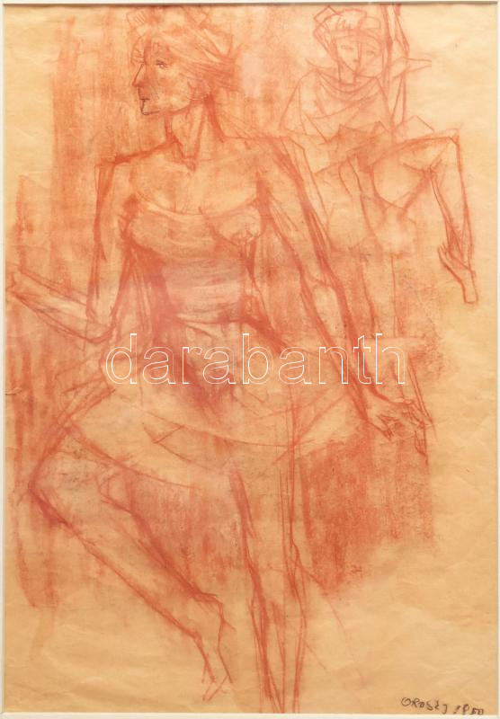 Orosz János (1932-2019): Balerinák. Vörös kréta, papír, Jjl.: Orosz J ...