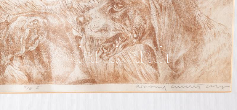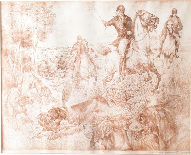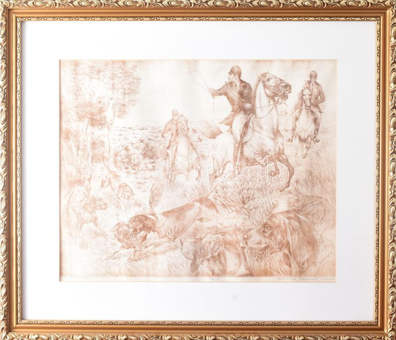 Rádóczy Gyarmathy Gábor (1943-): Falkavadászat V. rézkarc, papír, Jjl....