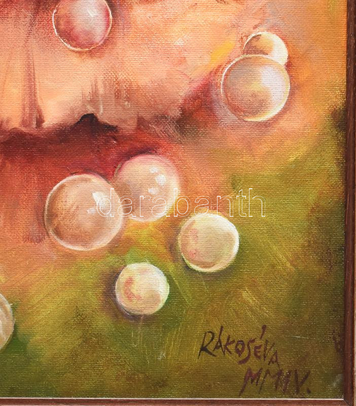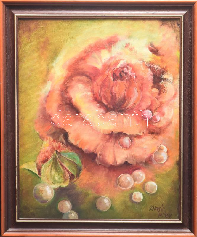 Rákos Éva: Rózsa. olaj, kasírozott farost, jjl: RÁKOS ÉVA MMIV. 50x40cm, keretben, keret jó állapotú.