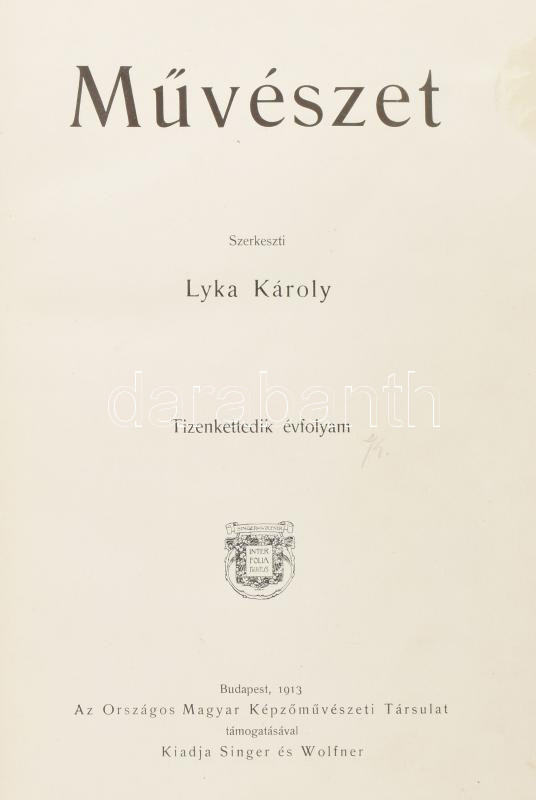 1913 Művészet. XII. évf. Szerk.: Lyka Károly. Bp., Singer és Wolfner,(... https://www.darabanth.com/en/466-Online-auction/466.0/Books/Books-Architecture-Art~500046/1913-Muveszet-XII-evf-Szerk-Lyka-Karoly-Bp-Singer-es-Wolfner-Hornyanszky-Viktor-ny-~II3065498