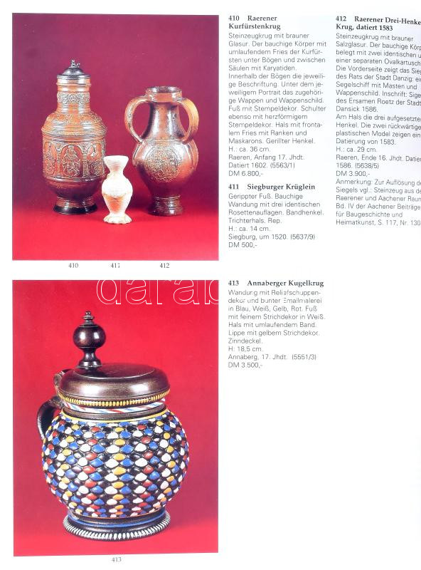 Hampel árverési katalógus, zömmel habán kerámiák, fajanszok, kőcserép ...