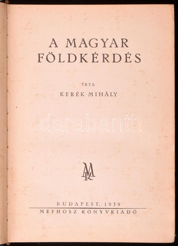 https://www.darabanth.com/en/466-Online-auction/466.0/Books/Books-History~500048/Kerek-Mihaly-A-magyar-foldkerdes-Bp-1939-Mefhosz-Konyvkiado-Kiadoi-egeszvaszon-kotC3~II3077138