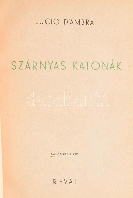 Lucio D'Ambra: Szárnyas katonák. Bp.,é.n.,Műegyetemi Sportrepülő Egyesület, (Révai-ny.) Kiadói egészvászon-kötések, kissé kopásnyomokkal, de alapvetően jó állapotban.