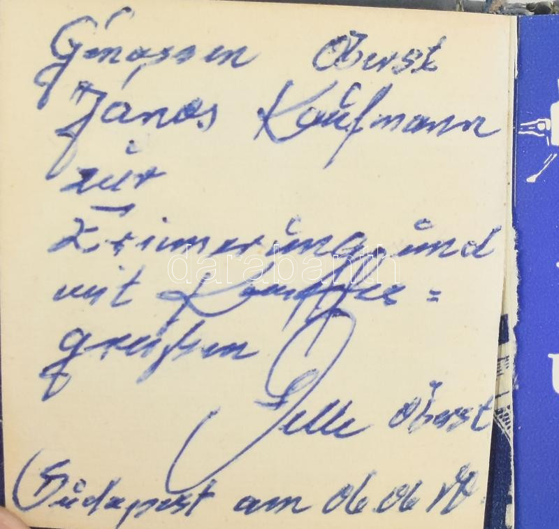 Description: Weltraumflug UdSSR - DDR. (Szovjet-NDK közös űrrepülés minikönyv). Dresden, 1979, Verlag Zeit im Bild. Fekete-fehér és színes fotókkal. Német nyelven. Kiadói műbőr-kötés, minimálisan sérült borítóval. Az előzéklapon Kaufmann János repülőmérnök, ezredes részére szóló, német nyelvű dedikációval.