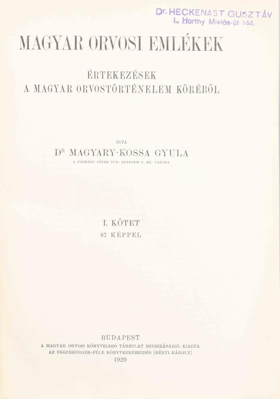Magyary-Kossa Gyula: Magyar orvosi emlékek I-III. köt. Értekezések a m... https://www.darabanth.com/en/466-Online-auction/466.0/Books/Books-Natural-sciences-Medicine~500044/Magyary-Kossa-Gyula-Magyar-orvosi-emlekek-I-III-kot-Ertekezesek-a-magyar-orvostortenelem-kC3~II3131257