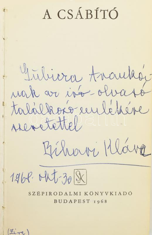 https://www.darabanth.com/en/466-Online-auction/466.0/Books/Books-Other-rarities~500042/Bihari-Klara-A-csabito-DEDIKALT-Bp-1968-Szepirodalmi-Kiadoi-nyl-kotes-szakadt-kiad~II3143242