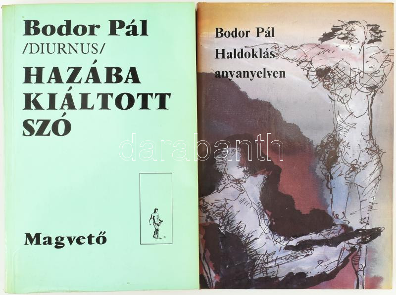Bodor Pál 2 műve (egy DEDIKÁLT): Haldoklás anyanyelven. Bp., 1986, Magvető. Kiadói egészvászon-kötés, kiadói papír védőborítóban. A szerző, Bodor Pál (1930-2017) költő, közíró, műfordító által DEDIKÁLT példány. + Hazába kiáltott szó. Bp., 1989, Magvető. Kiadói papírkötés, minimálisan sérült borítóval.