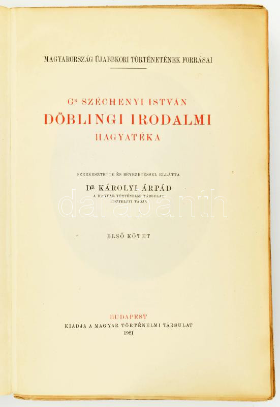 Gróf Széchenyi István döblingi irodalmi hagyatéka. I. köt. Szerk. és b... https://www.darabanth.com/en/466-Online-auction/466.0/Books/Books-Other-rarities~500042/Grof-Szechenyi-Istvan-doblingi-irodalmi-hagyateka-I-kot-Szerk-es-bev-ellatta-Karolyi-~II3126530