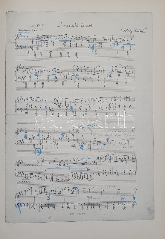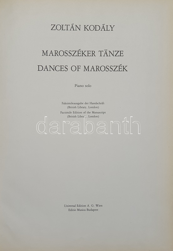 Kodály Zoltán: Marosszéki táncok zongorára. Az eredeti kézirat fakszimile kiadása. Marosszéker Tänze. Dances of Marosszék. Piano solo. (Számozott.)