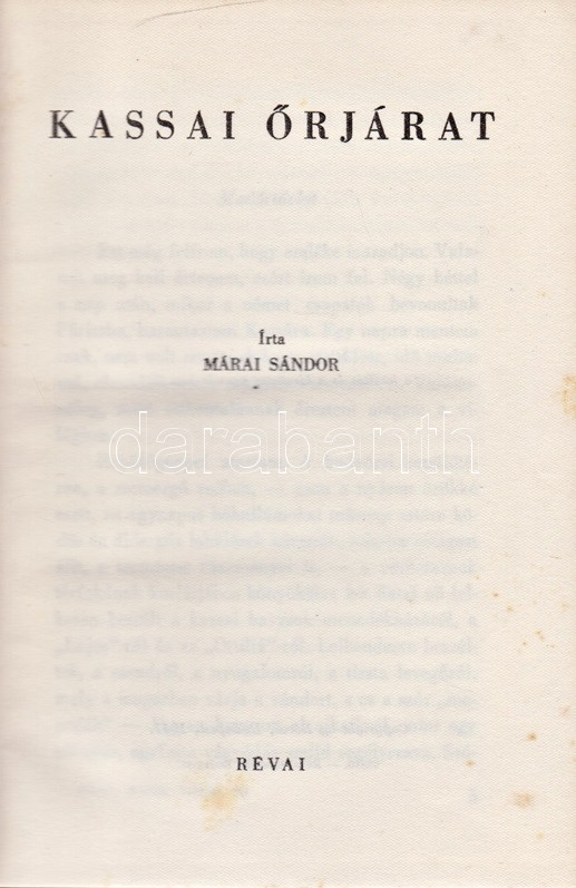 (Budapest, 1941). Révai (ny.... https://www.darabanth.com/en/466-Online-auction/466.0/Books/Books-Other-rarities~500042/Marai-Sandor-Kassai-orjarat-Esszek-Budapest-1941-Revai-ny-203-plus-1-p-Elso-kia~II3124471