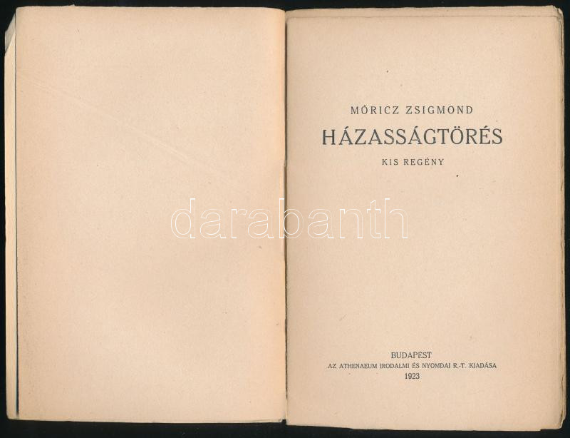 https://www.darabanth.com/en/466-Online-auction/466.0/Books/Books-Other-rarities~500042/Moricz-Zsigmond-Hazassagtores-Kis-regeny-Bp-1923-Athenaeum-125plus3-p-Elso-kiadas-Fay~II3125050