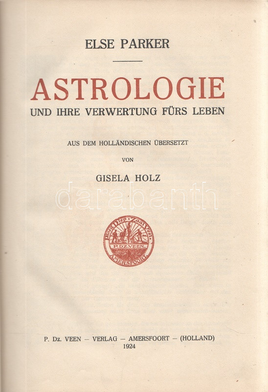 Parker, Else: Astrologie und ihre Verwertung fürs Leben. Aus dem Holländischen übersetzt von Gisela Holz.