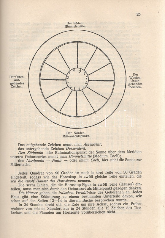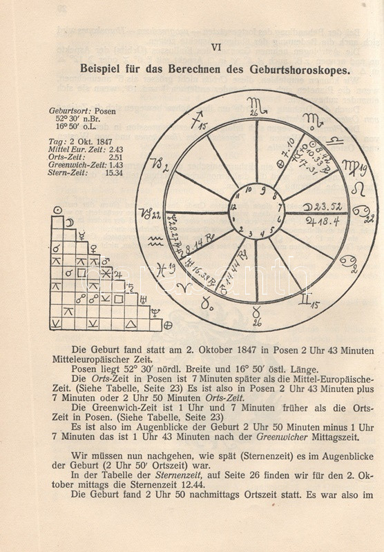 Else Parker holland asztrológus munkája az egyéni emberi sors és a kozmosz közötti viszony tisztázására törekszik. A munka a mögöttes ezoterikus háttérismeretek közlésére alig szorítkozik, jobbára gyakorlati tanácsadással szolgál. A munka német fordítása néhány évvel az újságokban olvasható horoszkóp-rovatok megjelenése előtt készült. A címlap melletti levélen a szerző portréja. Szövegközti asztrológiai ábrákkal illusztrált. A szövegben számos helyen régi színes ceruzás aláhúzások, szövegkiemelések.