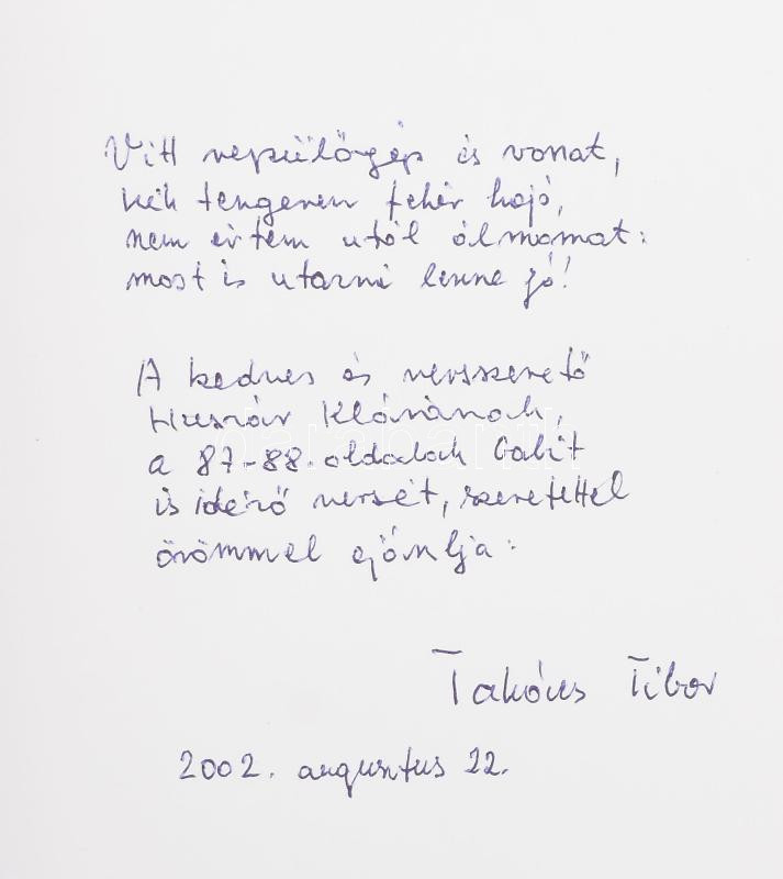 https://www.darabanth.com/en/466-Online-auction/466.0/Books/Books-Other-rarities~500042/Takacs-Tibor-Aranyhid-a-nagyvilagba-Verses-1955-2000-Bp-2000-Biro-Family-Verses-DEDIKAC~II3142048