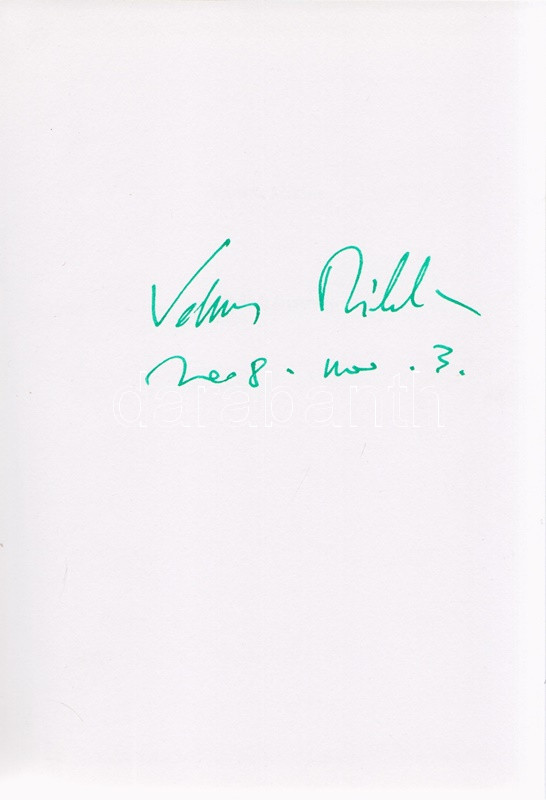 Az első előzéken a szerző saját kezű aláírása: ,,Vámos Miklós. 2008. nov. 3". A regény első kiadása 2000-ben jelent meg, példányunk a huszonharmadik változatlan utánnyomásból való.