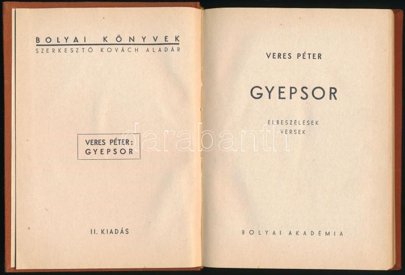 https://www.darabanth.com/en/466-Online-auction/466.0/Books/Books-Other-rarities~500042/Veres-Peter-Gyepsor-Elbeszelesek-versek-Bolyai-Konyvek-Bp-1940-Bolyai-Akademia-157plus3~II3036020