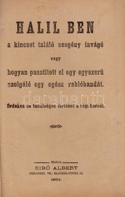 Halil Ben a kincset találó szegény favágó vagy hogyan pusztított el egy egyszerű szolgáló egy egész rablóbandát. Érdekes és tanúlságos történet a régi korból.