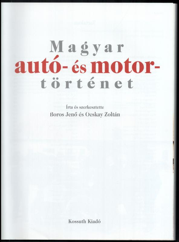 Boros Jenő - Ocskay Zoltán: Magyar autó- és motortörténet. Bookazine. ...