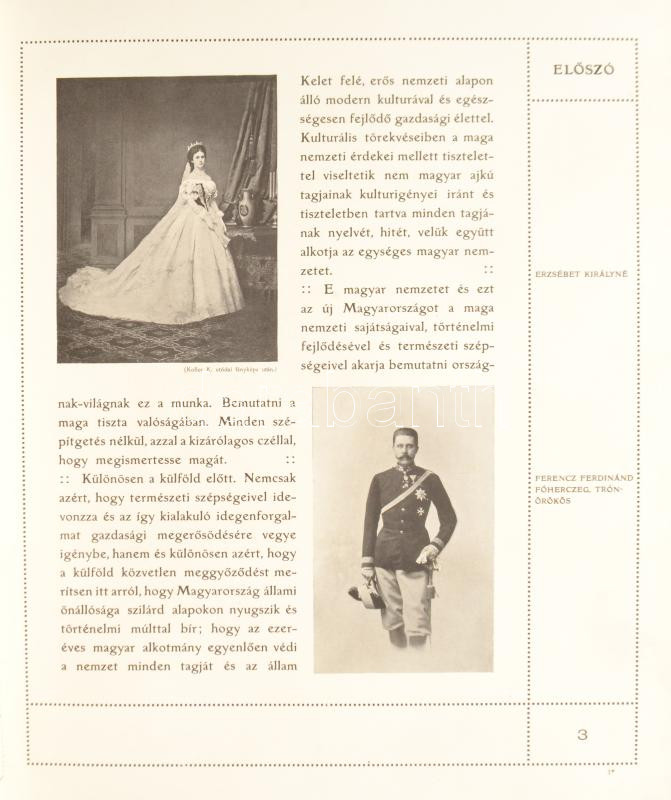 Magyarország. A Kereskedelemügyi M. Kir. Miniszter megbízásából kiadja a Magyar Kir. Államvasutak igazgatósága. Bársony István, Dr. Bodnár Gyula, Dr. Borovszky Samu, Dr. Erődi Béla, Gonda Béla, Dr. Hankó Vilmos, Dr. Lóczy Lajos, Novák Tivadar, Dr. Semayer Vilibáld, Siegmeth Károly, Dr. Sziklay János, Dr. Toldy László közreműködésével szerkesztette Kain Albert MÁV felügyelő. Sajtó alá rendezte Czakó Elemér. Bp., 1909, Erdélyi,(Franklin-ny.), 2+400 p. Erdélyi Mór fekete-fehér fotóival rendkívül gazdagon illusztrált, rajta Magyarország városaival, történelmi nevezetességeivel Dévénytől az Aldunáig, a Lengyel-Tátrától Fiuméig. A díszeket rajzolta Helbing Ferencz. A bekötési tábla terve Szendrői és Őrkény pályanyertes műve. Kiadói szecessziós aranyozott, festett, vaknyomásos egészvászon-kötésben, az elülső táblán koronás nemzeti középcímerrel, Gottermayer-kötésben, kopott borítóval, kissé laza fűzéssel, 36,5x30x5 cm