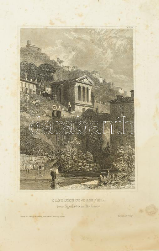 Meyer' Universuma, vagy leirása és ábrázolata minden látásra és emlékezetre méltó dolgoknak a' természet és művészség' köréből az egész földön. I. köt (Unicus!) . Pesten, 1835. Ifj. Kilián Gy. [2]+132 p.+46 t. (acélmetszetek). Kiadói félvászon-kötésben, kopott, foltos borítóval, foltos lapokkal, az első szöveglap (1/2 p.) sérült, szakadt, néhány lap kijár (8 lap), néhány lap sarkán apró hiánnyal. Eredeti kötésben, kompletten ritka!