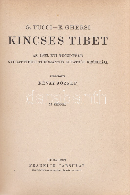 Kincses Tibet. Az 1933. évi Tucci-féle nyugat-tibeti tudományos kutatóút krónikája. Fordította Révay József. 62 képpel.