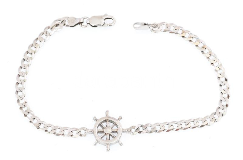 Ezüst(Ag) masszív lapos pancer karkötő hajókormány díszítéssel, jelzett, h: 20,5 cm, nettó: 6,6 g