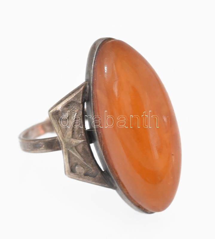 Gyűrű borostyánnal. ezüst (Ag) jelzett, br 4,12 g m: 54