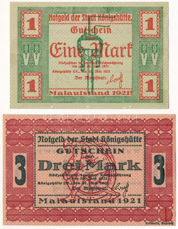 Németország / Weimari Köztársaság / Königshütte 1921. 1M + 3M T:AU,XF ...