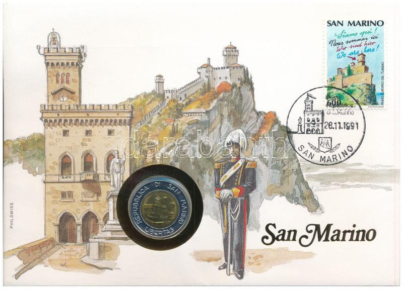 San Marino 1991. 500L Bimetál felbélyegzett borítékban, bélyegzéssel, ... https://www.darabanth.com/en/466-Online-auction/466.0/Numismatics/Envelopes-with-Coins-and-Banknotes~1500005/San-Marino-1991-500L-Bimetal-felbelyegzett-boritekban-belyegzessel-nemet-nyelvu-leirass~II3143391